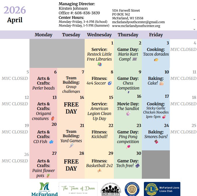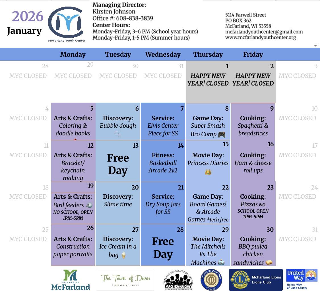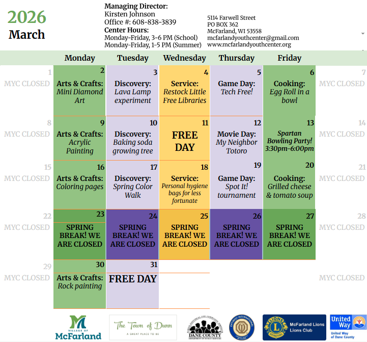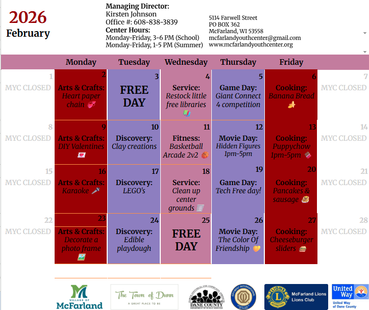 McFarland Youth Center is a free, non-profit youth enrichment program for middle school youth (6th through 8th grade) in the McFarland area. We offer a free space for youth recreational activities, daily hands-on programming, clubs, and volunteer opportunities!