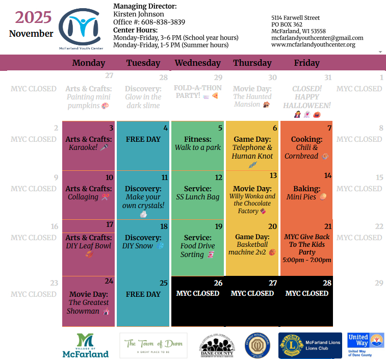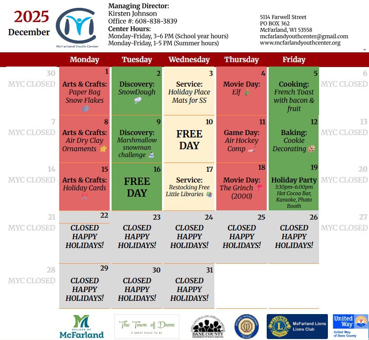 McFarland Youth Center is a free, non-profit youth enrichment program for middle school youth (6th through 8th grade) in the McFarland area. We offer a free space for youth recreational activities, daily hands-on programming, clubs, and volunteer opportunities!